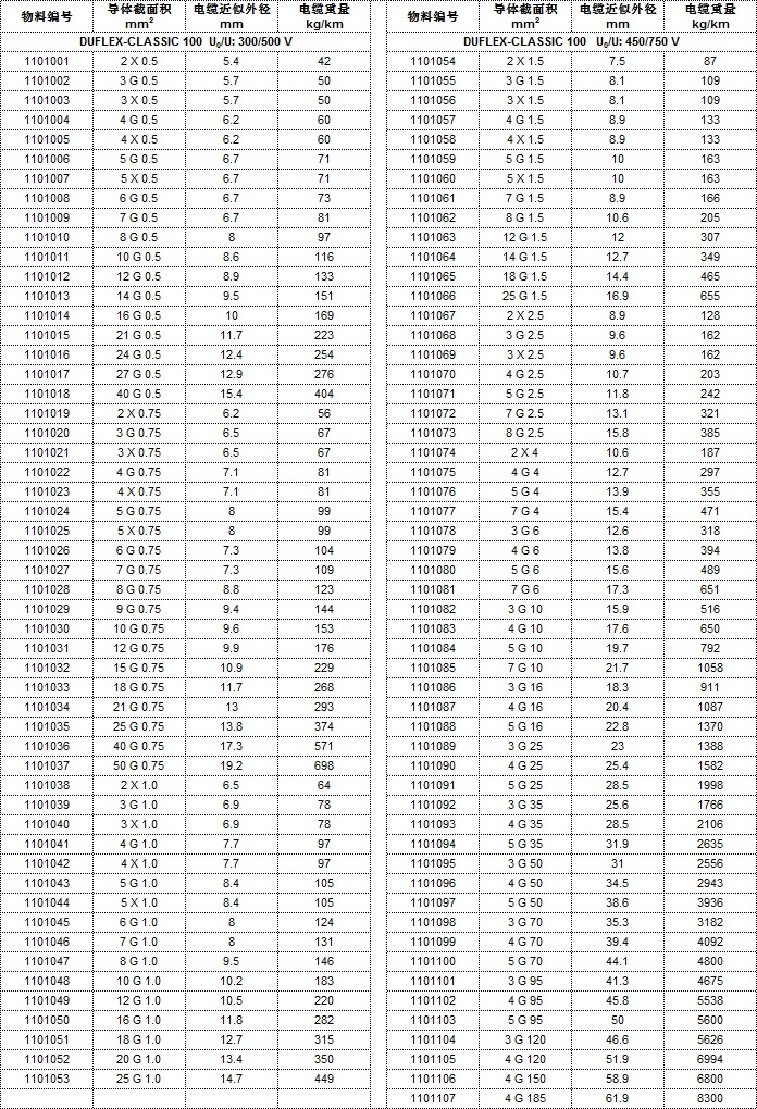 - DUFLEX-CLASSIC 100技术参数