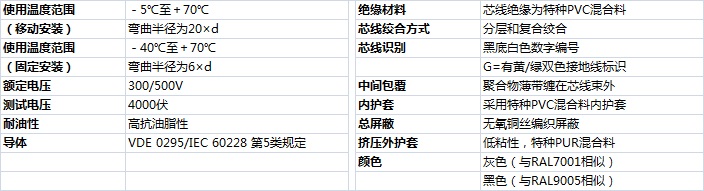 加强型耐油和冷却液PUR护套数字芯线屏蔽柔性控制电缆(内护型)