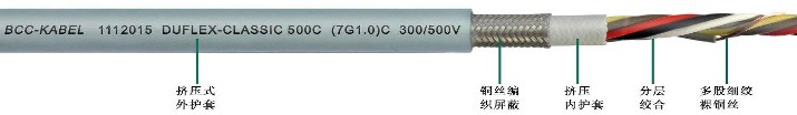 加强型耐油和冷却液PUR护套彩色芯线屏蔽柔性控制电缆(内护型)