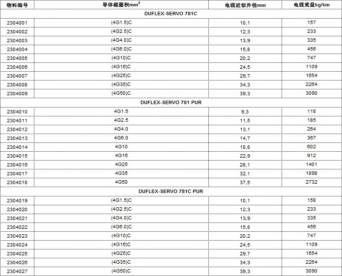 - DUFLEX-SERVO 781C/781 PUR/781C PUR技术参数