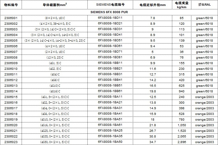 加强型PUR护套西门子6FX-8008反馈电缆/伺服电机电缆