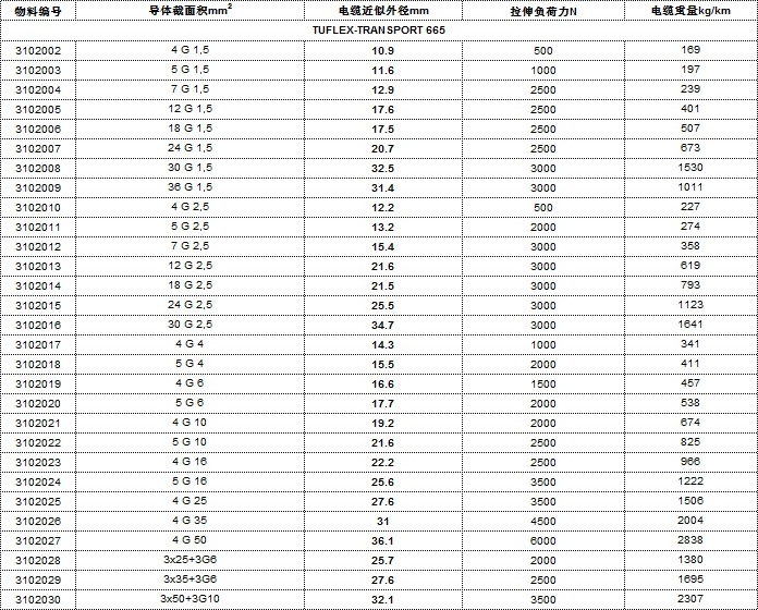 - TUFLEX-TRANSPORT 665技术参数