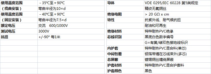 抗紫外线单芯和多芯耐热(屏蔽)抗扭电缆