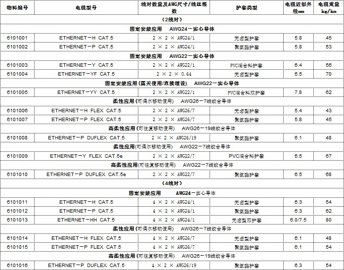 - ETHERNET CAT.5/CAT.5E/FLEX CAT.5/FLEX CAT.5E技术参数