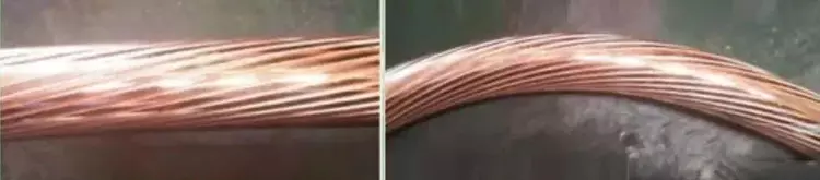 弯曲对导体的影响:电缆导体由多根单芯导线以一定节距绞合而成,在导体制作过程中导体的单线根数和节距大小决定了导体弯曲时的稳定性,过大的弯曲将导致导体的松散和突起,直接影响导体外层半导电层和绝缘层的性能。