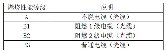 A、B1、B2、B3级阻燃级别引用的则是GB 31247-2014《电缆及光缆燃烧性能分级》,依据火焰蔓延长度、燃烧过程中热量释放峰值、热量释放总量、燃烧速度、产生烟雾速度峰值、20min产生烟雾总量、烟雾浓度等指标,分为A、B1、B2、B3四个等级;